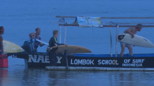 ボードを抱えて小舟に乗り込み、朝のしじまを破ってサーフィンへと向かうやんちゃな年寄り達。って、自分も他人のことは言えませんが。(;^ω^)