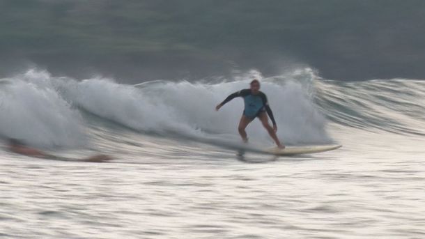 九十九里浜や湘南の波よりはるかに周期の長い波で、風も穏やかなので「おおらかなサーフィン」とでもいうのでしょうか。ハワイのノースショアのような「凶暴な波に挑むサーフィン」とはまったく趣が異なります。