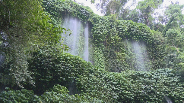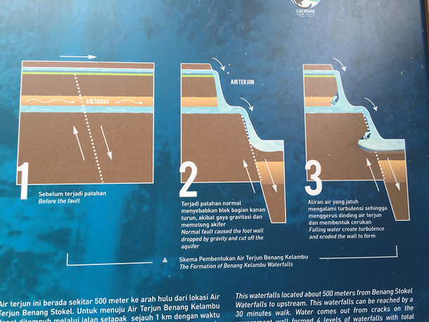 この滝は、Rinjani山からの伏流水が断層運動によって地表に現れたものです。AIK BERIKと呼ばれるこの一帯は、活断層と豊富な水が複雑な地形を作り出し、そのことが多様な動植物の生態系を生み出しています。