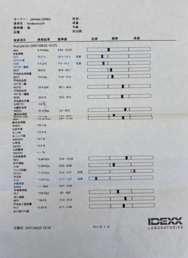 血液検査の結果