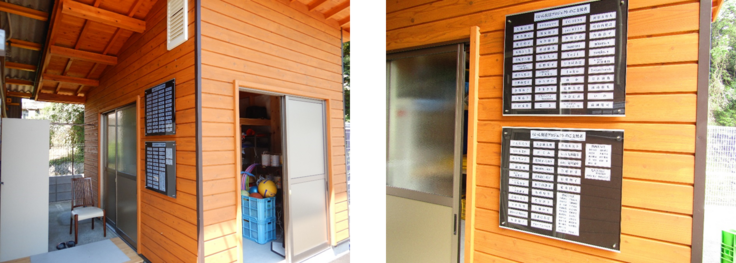 感謝のしるしとして「子ども達が作った紙漉きハガキ」を同封したお礼状を発送しております。また、ネームボード「らいん復活プロジェクトご支援者様」を作り、支援者のお名前を記載したボードを新しく出来た遊具・教材保管倉庫の壁面に取付けております。