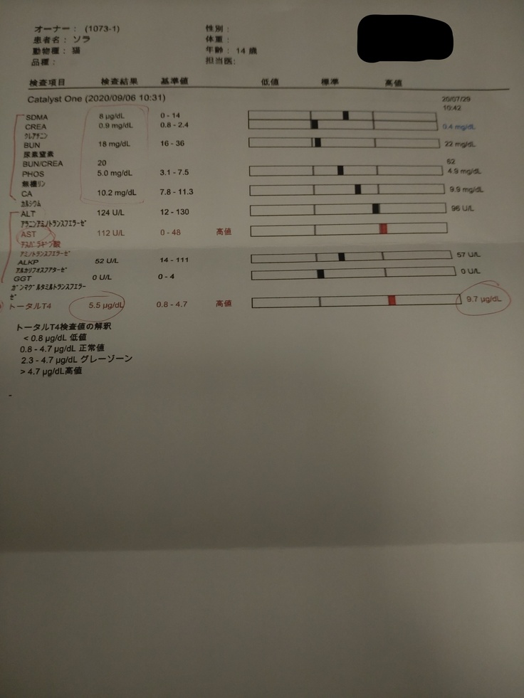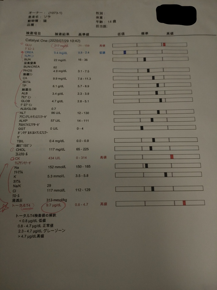トータルT4が甲状腺の数値となっており、9.7になっています。