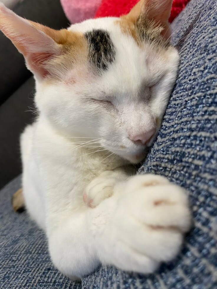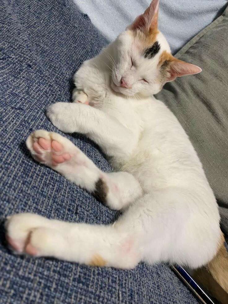 一度出産をし、その後避妊手術をしています。産まれた子供4匹のうち2匹とソラちゃんを連れ18歳の頃から一人暮らしをスタート(もう2匹は実家で飼っています)。
