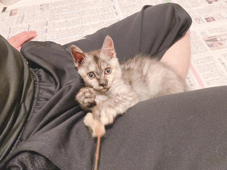 保護した当初は猫風邪にかかったりしていましたが、薬の投与などで今はとっても元気です。