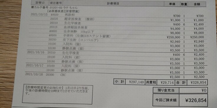 獣医さんからは一刻も早くSUB手術を受けるよう勧められた。その日は点滴と吐き気止めの注射をして一度帰宅した。