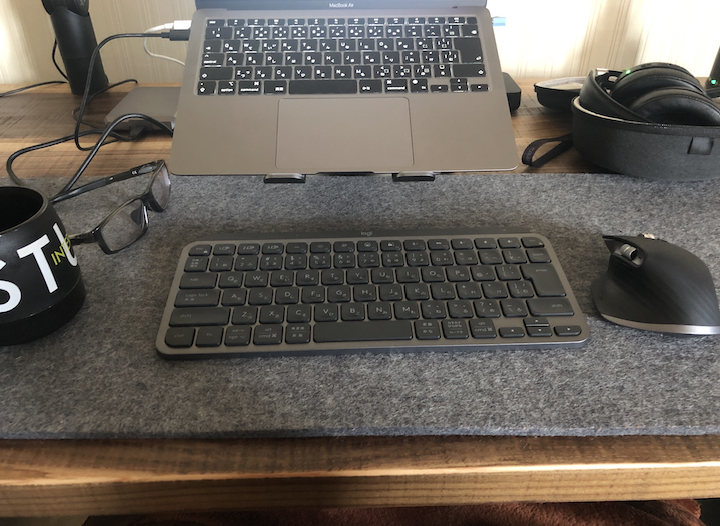 作業効率化を大きく上げられるマウス、キーボード、そして幅広のデスクと椅子、マイクとマイクアームなどです。