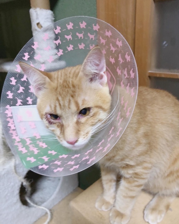 保護した時に目が塞がった状態だったので、瞬膜も癒着しており、その上慢性の猫風邪で、又元に戻るかも?と言われました。