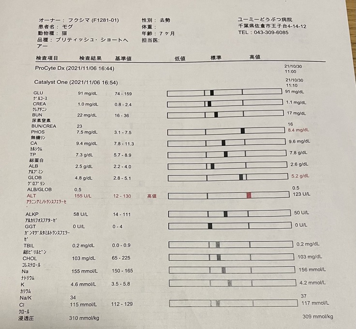 病院へ行きセカンドピニオンも受け、もぐがFIP(猫伝染性腹膜炎)を発症している可能性が高いと診断されました。