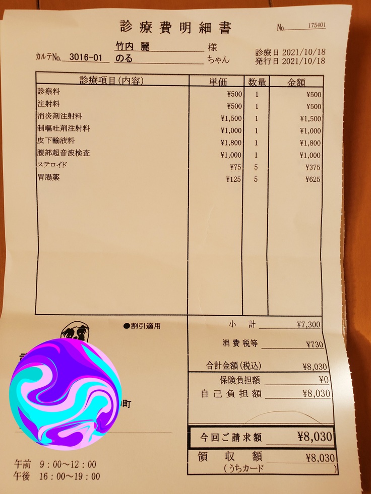 経過観察をするにも、今動いている腎臓はのる君7歳の見た目よりはずっとお年寄りでいつ動かなくなってもおかしくなく首の皮一枚で動いている状態と説明をうけました。