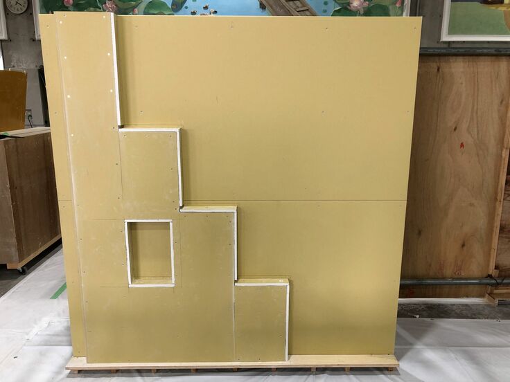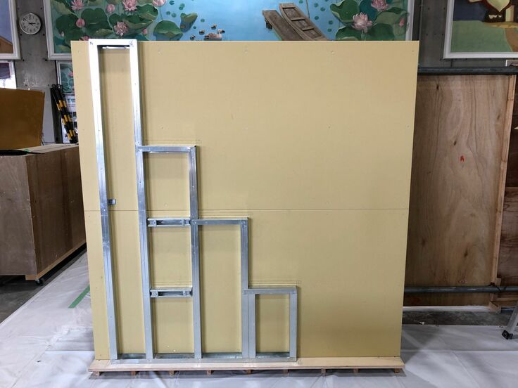 課題作成は、2工程に分けられたモジュール形式で行われ、2日間計9時間30分で競う。1日目モジュール1では、課題図面に基づき、軽量鉄骨を組立て、石膏ボードを取付けて下地を作成します。厚塗り部に中塗りを施し、作成した引型で置引を行います。2日目モジュール2では、壁面への上塗りとモールディングの取付け、接合部の補修、自由課題を経て全工程を終了します。