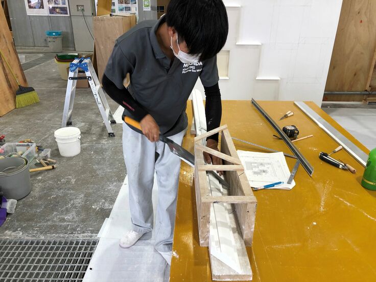 技能五輪全国大会に出場するためには、埼玉県の予選会を優秀な成績で通過しなくてはなりません。予選会の課題は建築大工技能検定2級の実技課題で、制限時間5時間30分以内で完成させます。