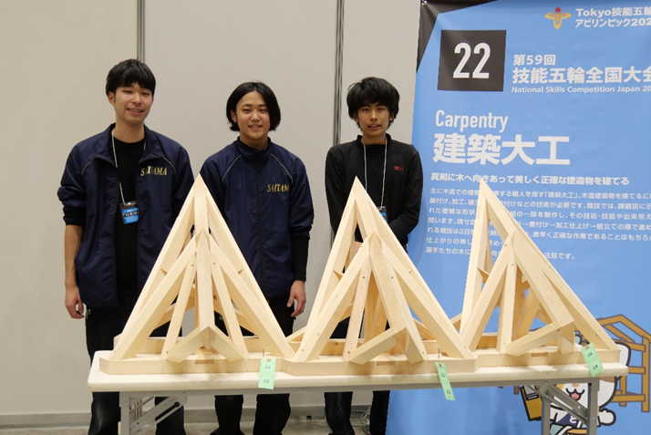 本学建設学科では、技能五輪全国大会に取り組む学生に対し、引き続き、練習会・練習材料・指導者の確保など、バックアップしていきたいと思っています。2022年大会は千葉県で開催されます。埼玉県の予選会は2月13日開催されました。今回は10人の学生がチャレンジしました。結果は3月に発表されます。果たして、何人の学生が予選を通過するのか、期待して下さい。