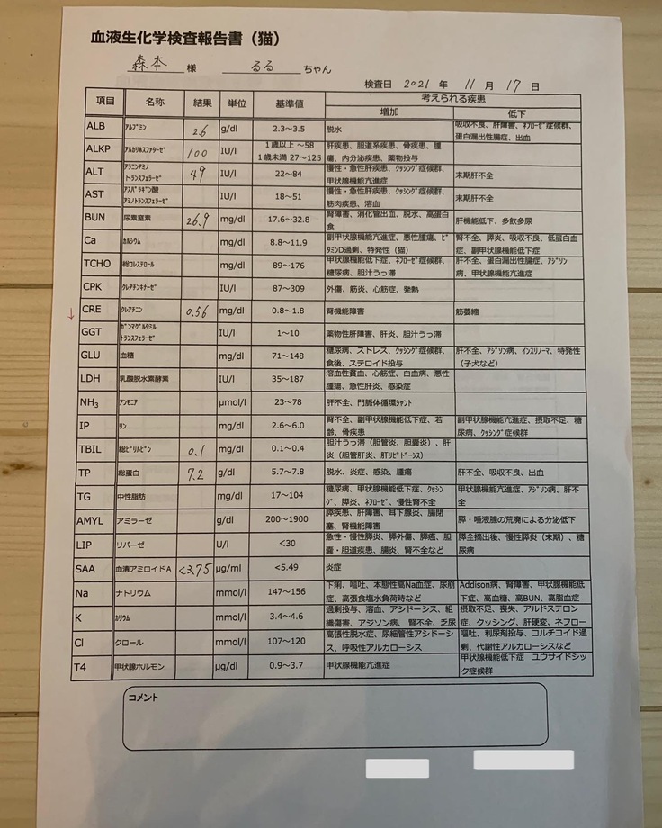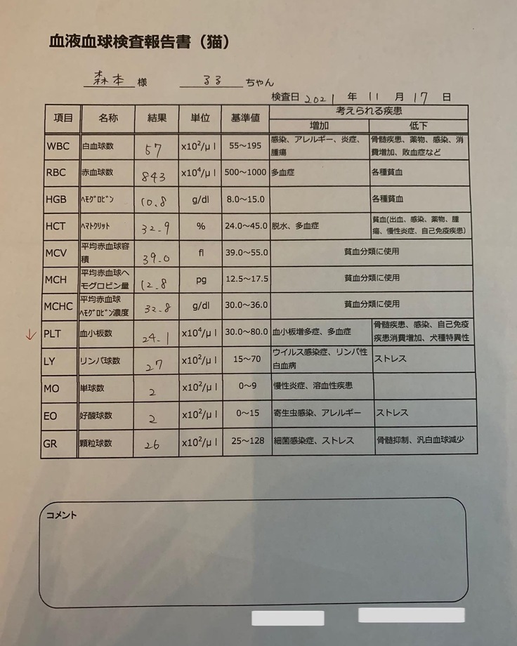10/30にした血液検査、腹水検査の結果をもらいに行くのと、治療開始して一回目の血液検査をしてきました。