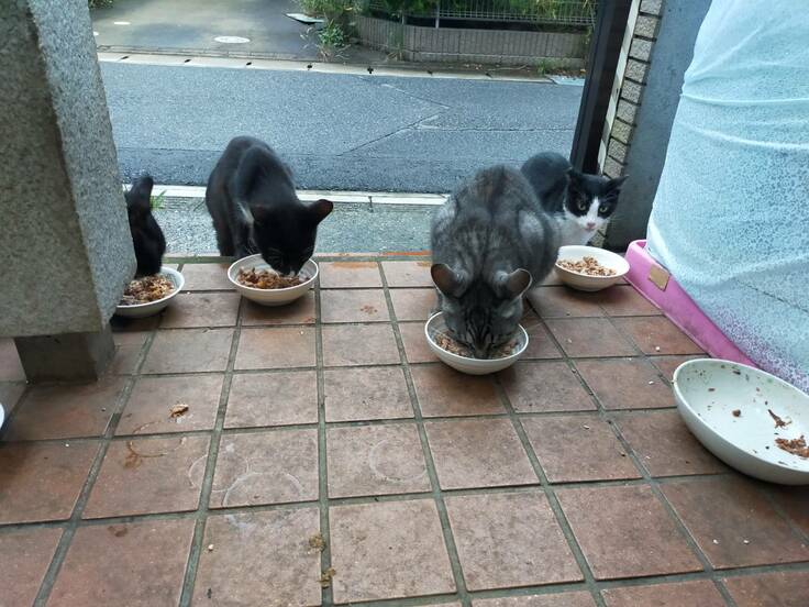 また現在我が家では、近所の野良猫達の面倒も見ております。保護猫活動を行うきっかけになった、野良猫達です。