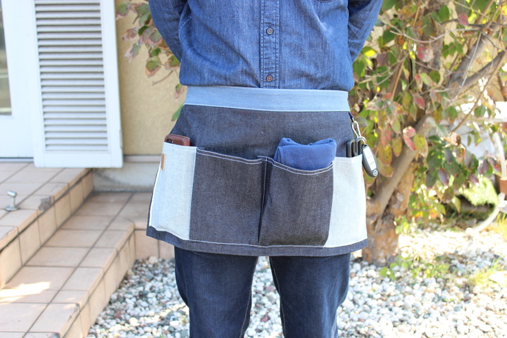 ▼デニム生地で、ポケットが充実したショートエプロンが出来ました!