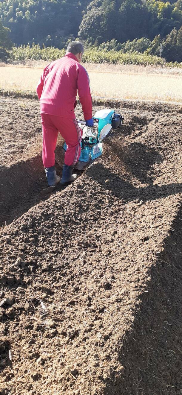 畑増設。1年間収穫できる、無農薬野菜を提供できるよう、準備のサポートです。畝作り。あと何本??