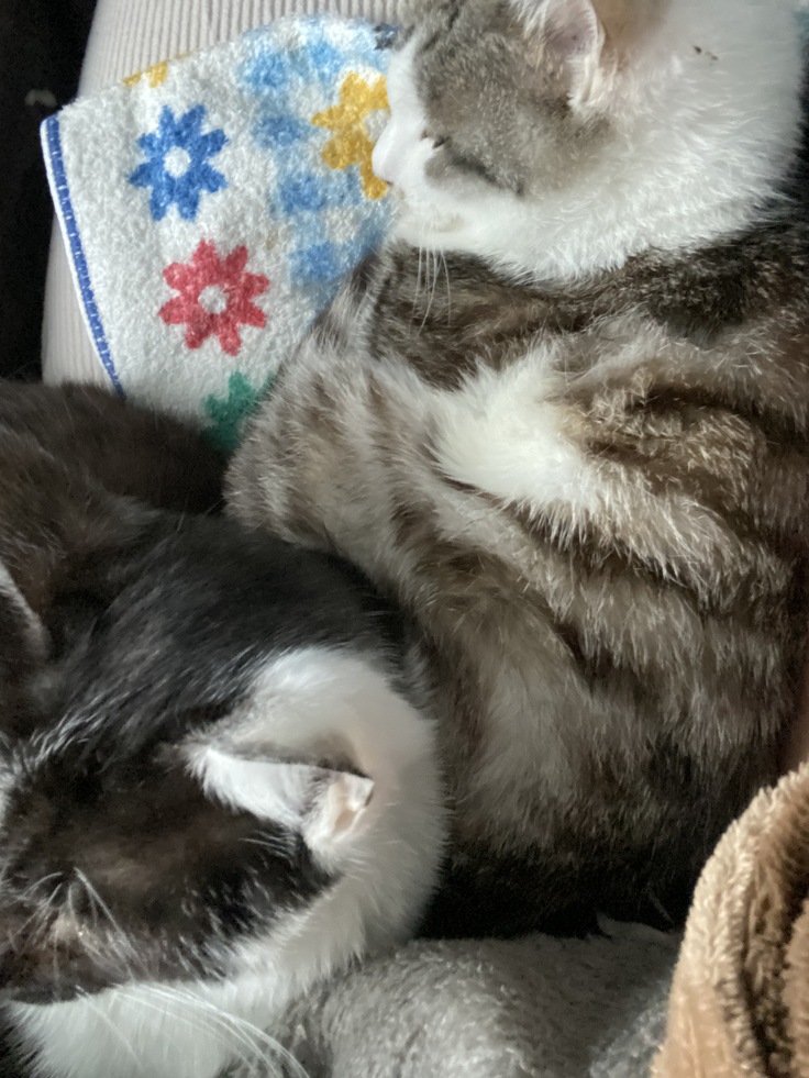 私の枕で寝るぷくとラッキーです。