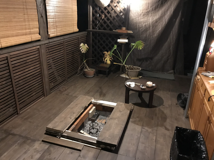 写真は、庵にある囲炉裏です。こちらで炭火を眺めながらお話しさせていただいております。