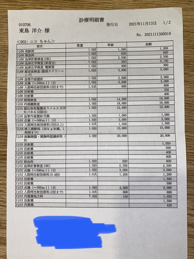 主にFIPの治療薬、その治療にかかる検査等医療費に使わせていただきます。