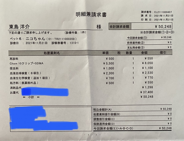 症状により検査内容も変わると思いますが、血液検査だけでも1度の診察で約10,000円程度かかる見込みです。それが5月まで月1回、計5回の見込みですので、 50,000円