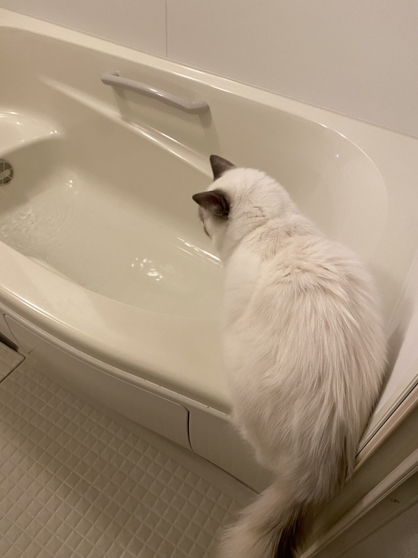41日目の投薬も無事終えました。変わらず元気で食欲もあります。お風呂のお湯を興味深く見守る様子ですw