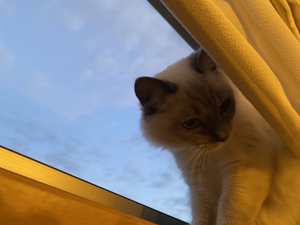 先日、窓から外を眺めるのが好きな猫たちの為に、窓の高さに合わせた台をつくってあげたのですが、気に入ってくれているようで、長い時間そこにいます…しかし、夜もそこで寝ているようです。カーテンが閉まってるとはいえ窓際ですから寒いと思うんですけどね…実際その周辺はひんやりした空気がながれてます…。