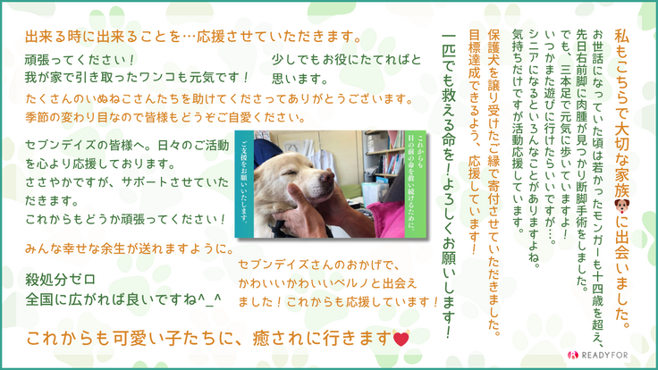 この度のクラウドファンディングでは、多くの方々から温かいご支援と、心に響く応援メッセージをいただいております。