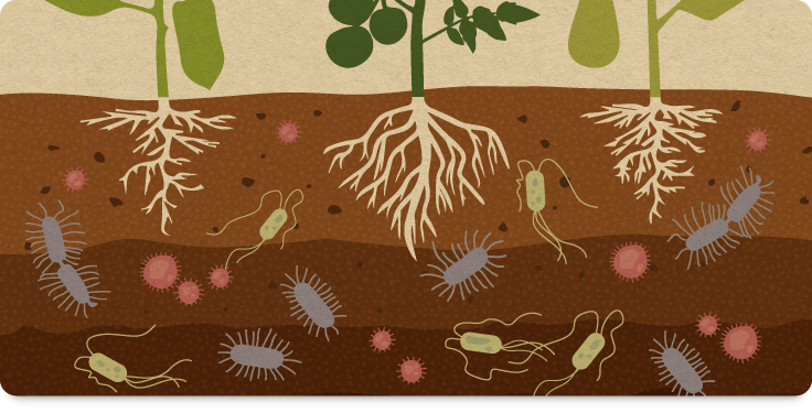 微生物が多い土壌では、有機物をしっかりと分解して栄養分を作りだすことができます。