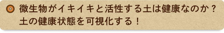近年、土壌微生物の量は、土の健康度(肥沃度)を示す大事な指標であると考えられています。