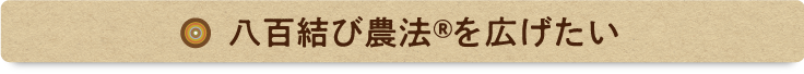 ぜひ皆さまのお力添えをいただき、より多くの方々に「八百結び農法®」について知ってもらい、多くの農家さまに「八百結び農法®」を導入していただくことで「おいしくて、あんしんな」作物をお届けしていただきたいと願っています。