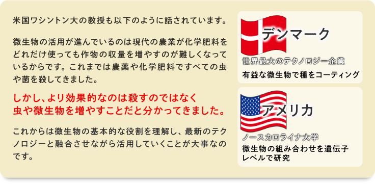 誤解を恐れず簡潔に言いますと、過去約70年もの間、結果微生物を死滅させたり、暮らしづらくする様な農法が主に推奨されてきました。