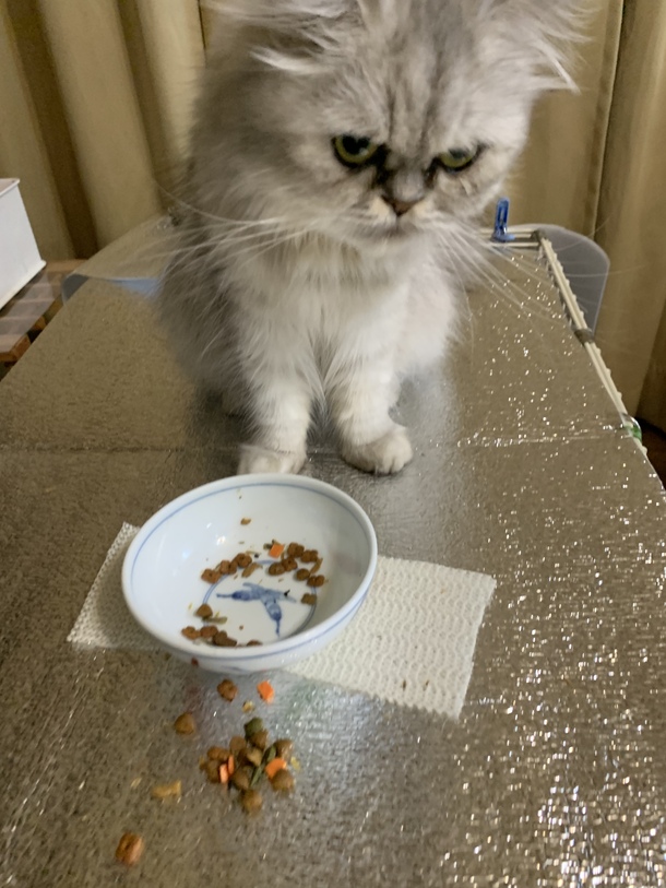 大抵の猫ちゃん達は、1ヶ月程度で無くなるみたいですがメイの場合は、抜けてないようです。