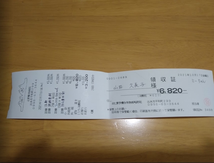 ※念の為、12月7日から領収証をいただくことにしました。