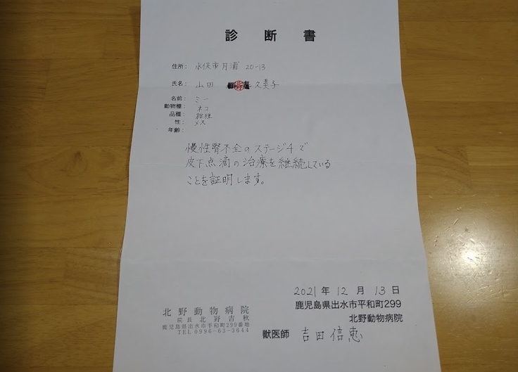 私が飼っているみーちゃんの延命治療(緩和ケア)のために使用します。