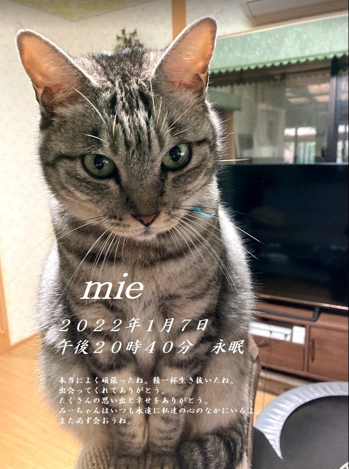 みーちゃんは永眠いたしました。