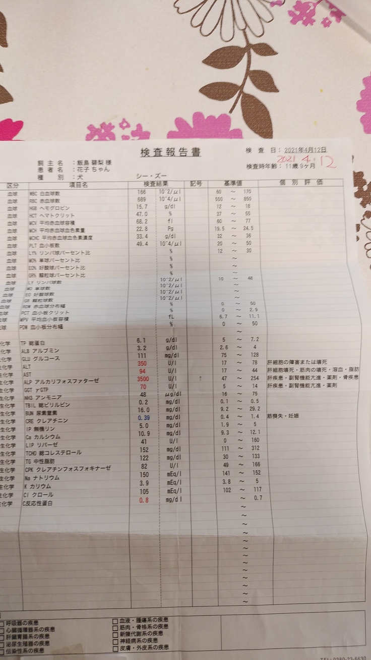 これまでの病院での花子の検査経緯もありますが、ただ現在、アジソン病という難病がわかりました。