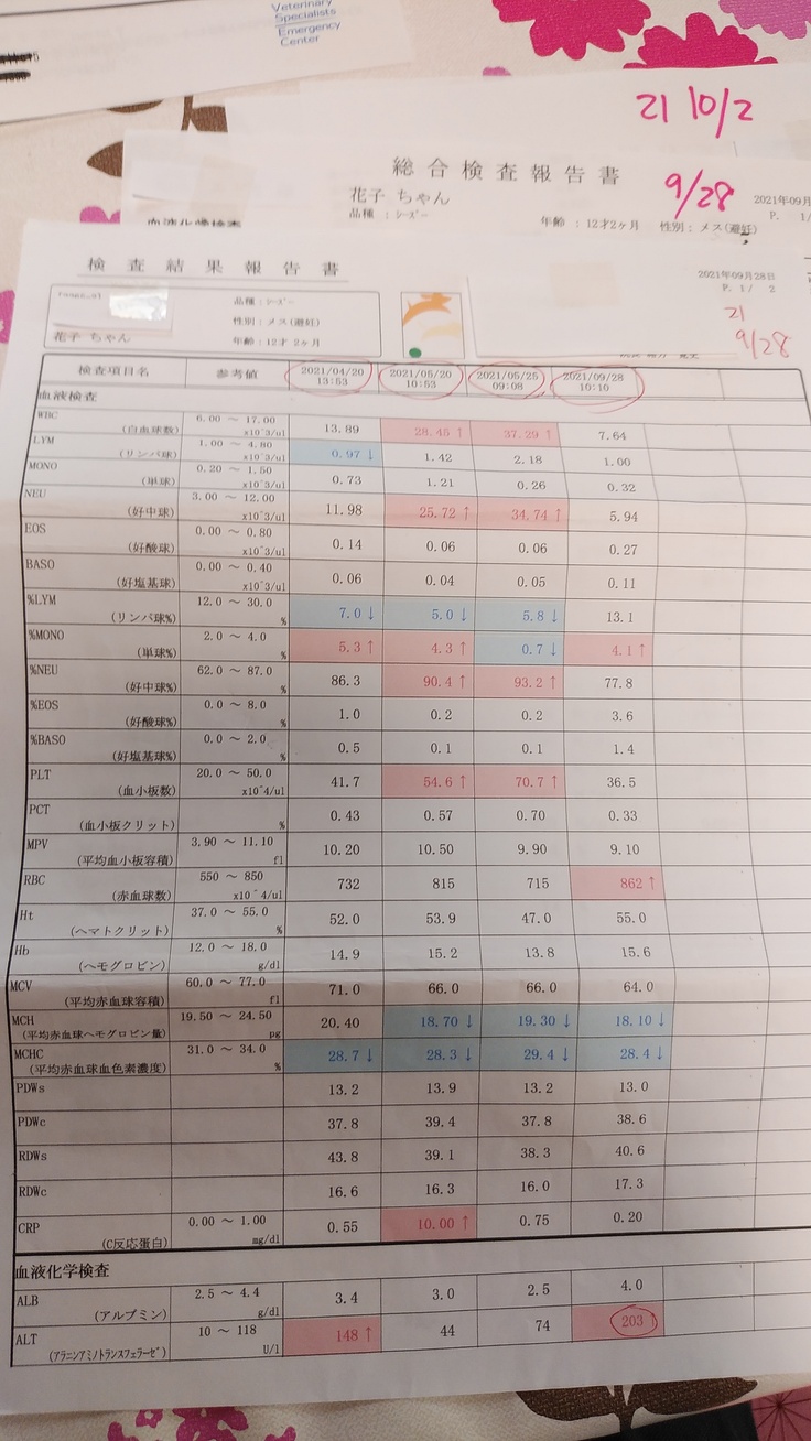 また、こちらには載せきれませんがこの1年で30回以上にも及び血液検査等、必要でしたら送らせて頂きます。長々と最期まで読んで頂き、感謝いたします。