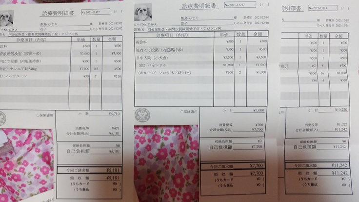 現時点での入院費は別にして、日々の花ちゃんの体調に応じての治療明細です。