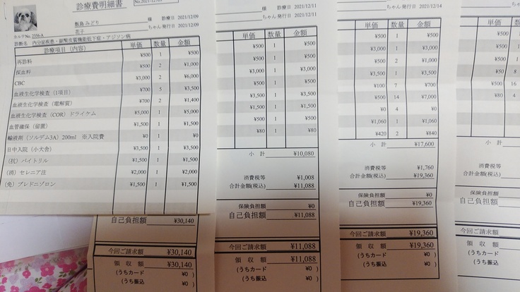 11月12日より12月23日-治療費、投薬と40万円を越えております。