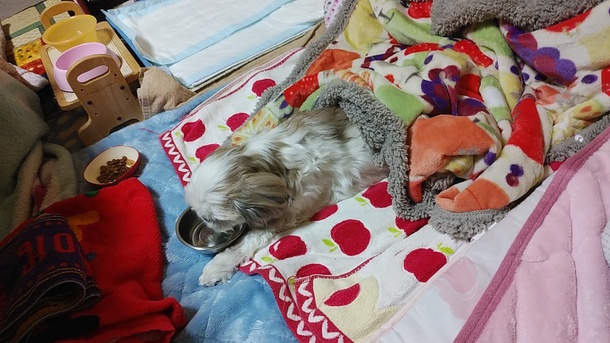 水分、ご飯摂取量を少なく、回数多くーは、トイレも含め、花ちゃんが必要としても、立ち上がれないので