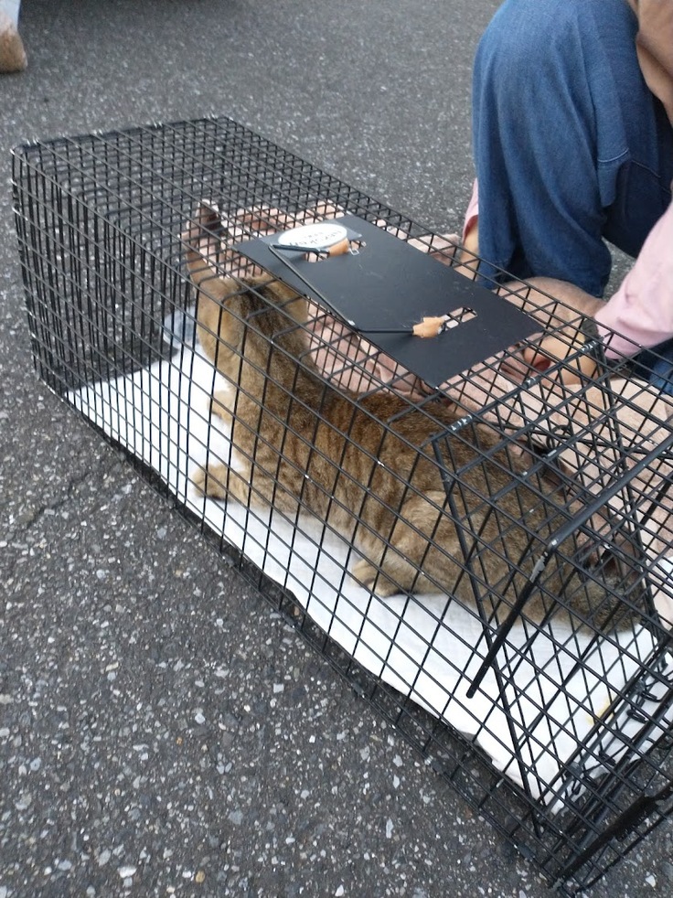 実際に捕獲したのは子猫よりも少し大きいオス猫で、見た感じでは6か月~1歳という感じでした。