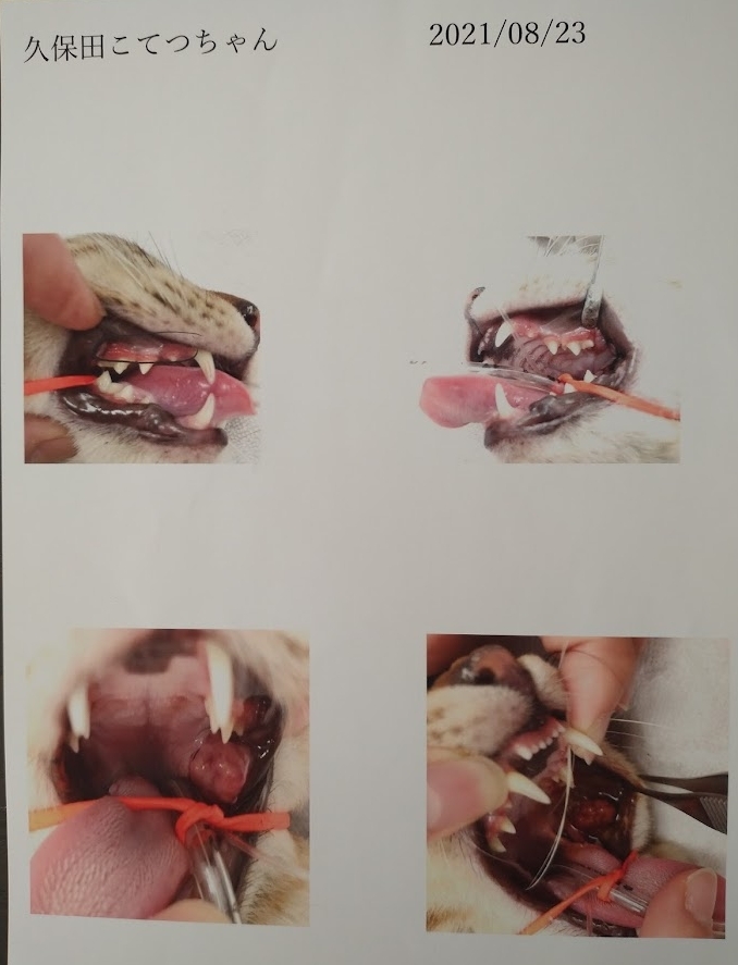 どうやら血を吐いているのではなく、口の中が切れているようだったので、急いで病院へ連れていくと、口の中に大きなポリープができていることが分かりました。