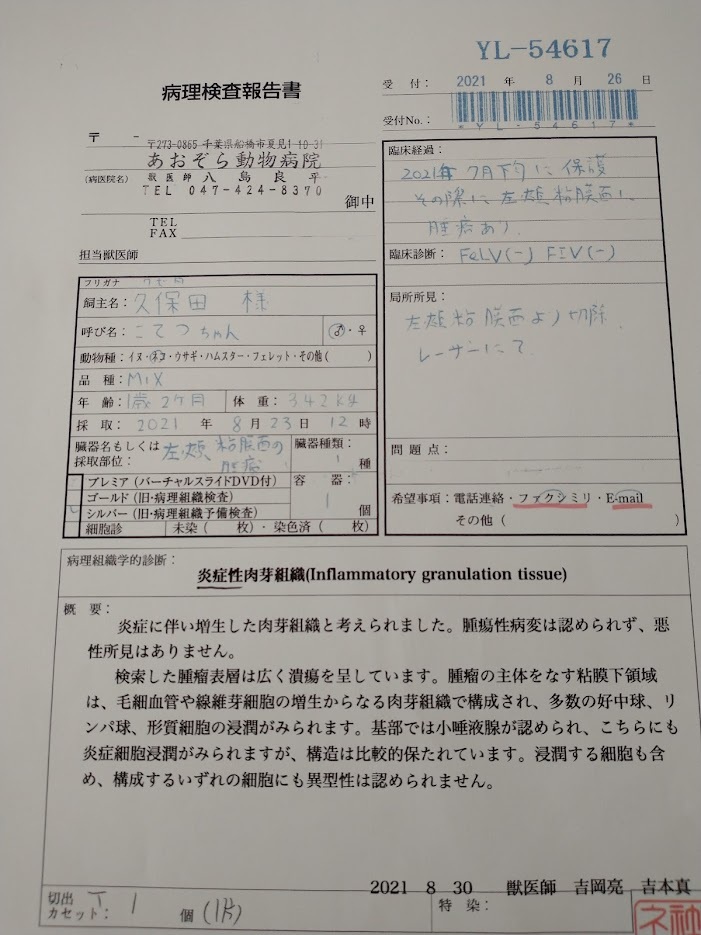 そこで大変心苦しいのですが、こてつの手術費と治療費のご援助をお願いしたいのです。
