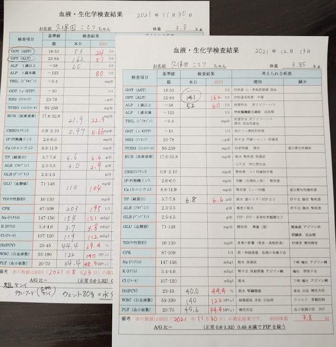 また、肝胆系の数値が悪化していることもあり、しばらくは定期的な通院が欠かせません。