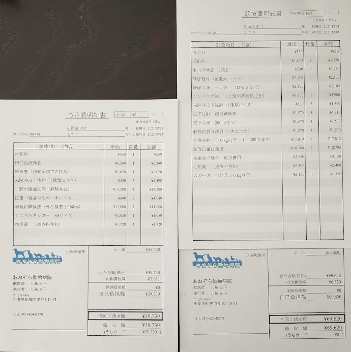 また、こてつに掛かる手術費と治療費も予算を大きくオーバーしてしまいました。