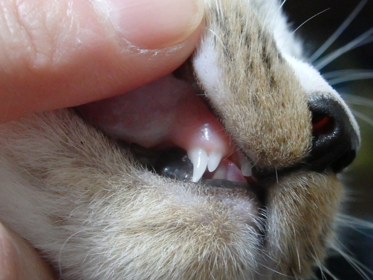 猫は月齢5~6か月ころから乳歯と永久歯の生え変わりの時期を迎え、両方の歯が同時に生えている状態になります。