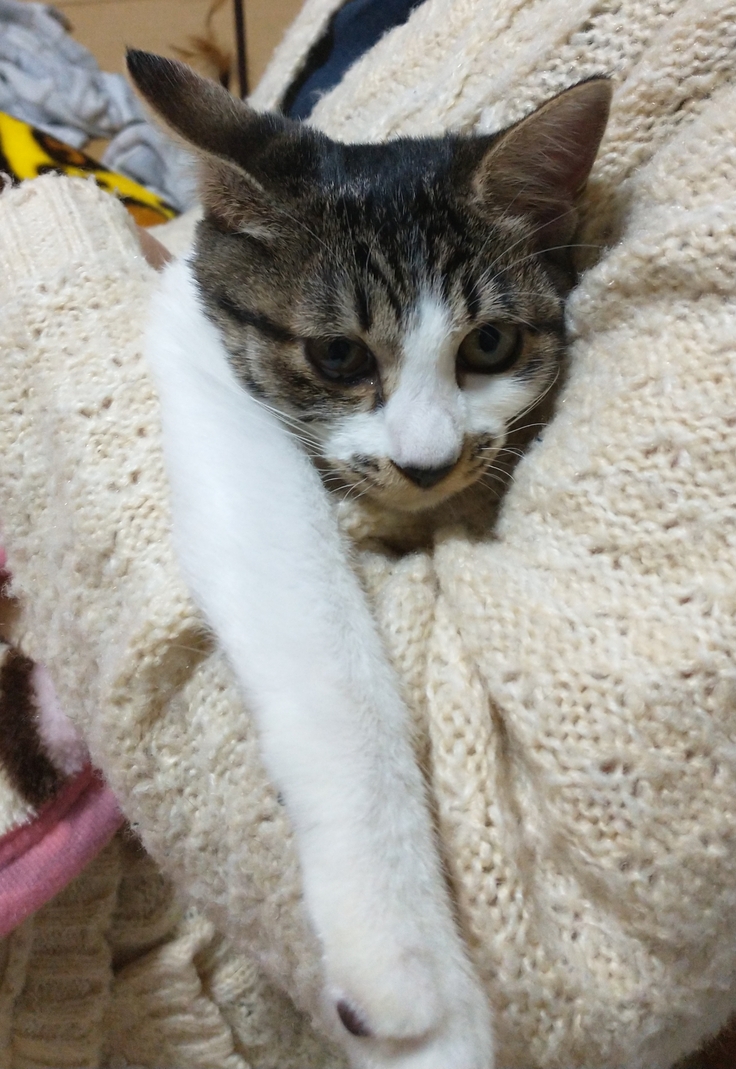 私の家では先住猫が2匹いるので愛情は3等分ですが、新しい里親さんの家ならカンナちゃんだけを可愛がってもらえて居心地が良いのだと思います。
