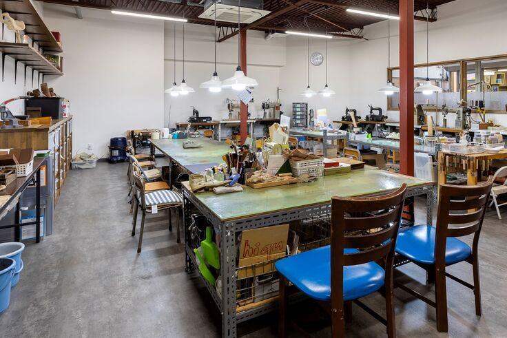 第三に、教室の貸スペース事業「シェア工房」(https://www.nishinari-seika.com/share.html)という支援です。「靴づくりに没頭したいけど、工房・アトリエがない」という靴職人・靴作家志望の方に、製靴塾の教室スペースや設備をご利用いただけるようにしました。本格的なアトリエを持つ準備期間のためのスペースとしてもご利用いただけます。