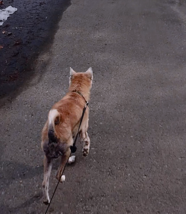 寒い時は、散歩に無理矢理連れて行くような感じでしたが、暖かくなってきた最近は散歩に行きたくて催促するようになり、外に出ると気持ち良いのか走るようになってきました!