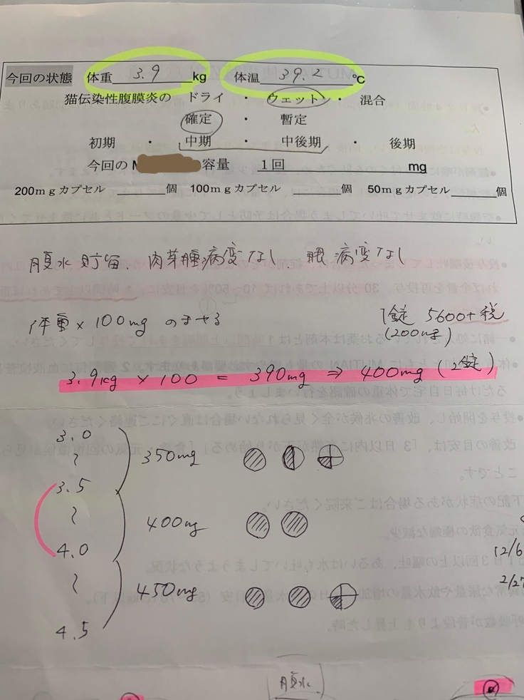 84日間サプリメントを投薬しFIP寛解